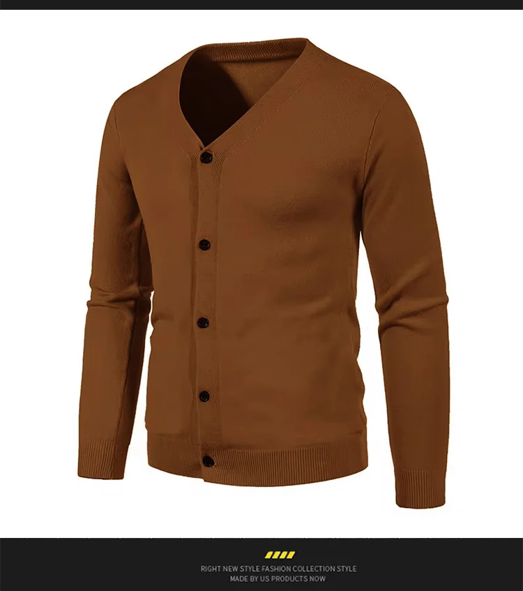 2024 M-5XL Autumn Men’s Knitted Cardigan Thin V-neck Basic Elastic Slim Fit Thin Sweater Solid Color Casual Versatile Coat