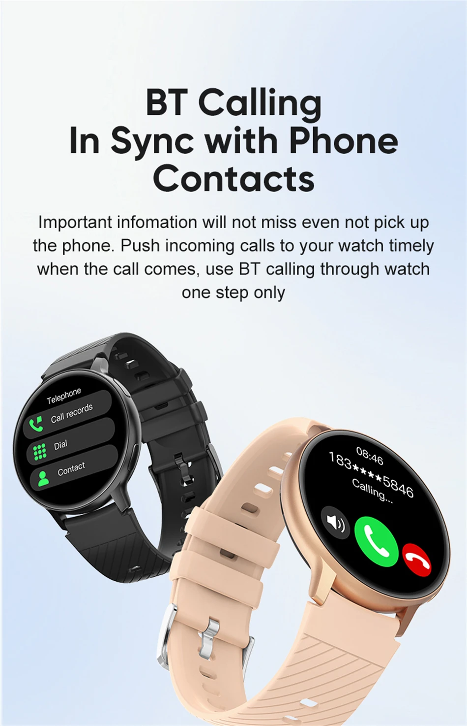 Answer: After connecting the watch to the mobile application, the watch will display information reminders and call reminders