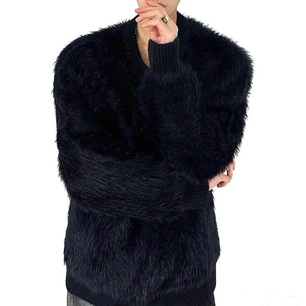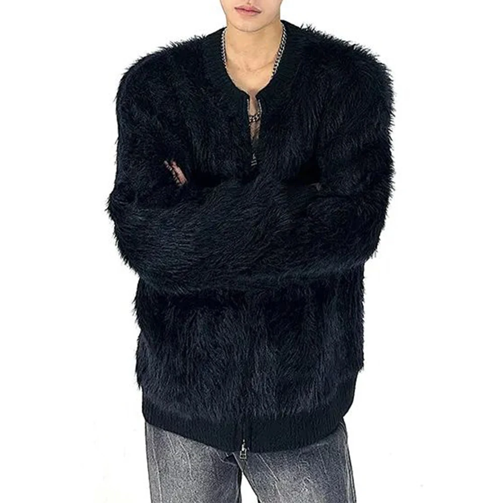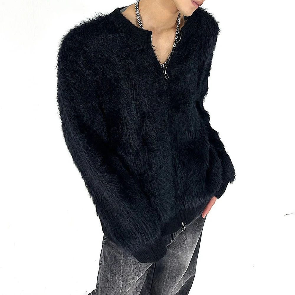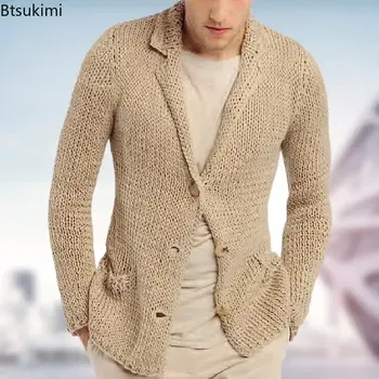 Mens Autumn Winter Y2k Solid Color Knitted Sweater 2024 New Essential Loose Casual Comfortable Simple Cardigan Sweater Couple
