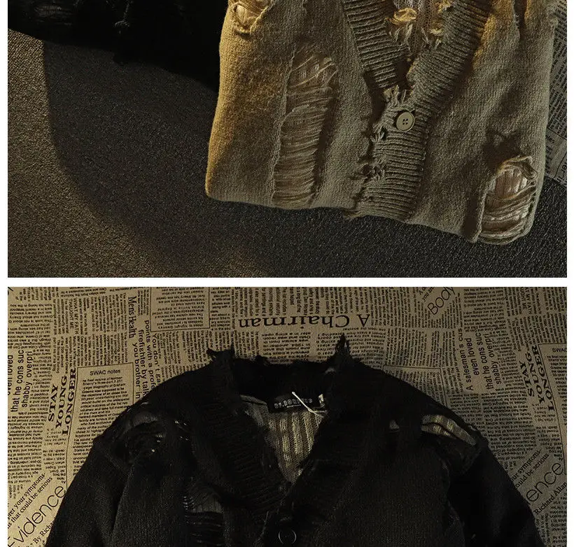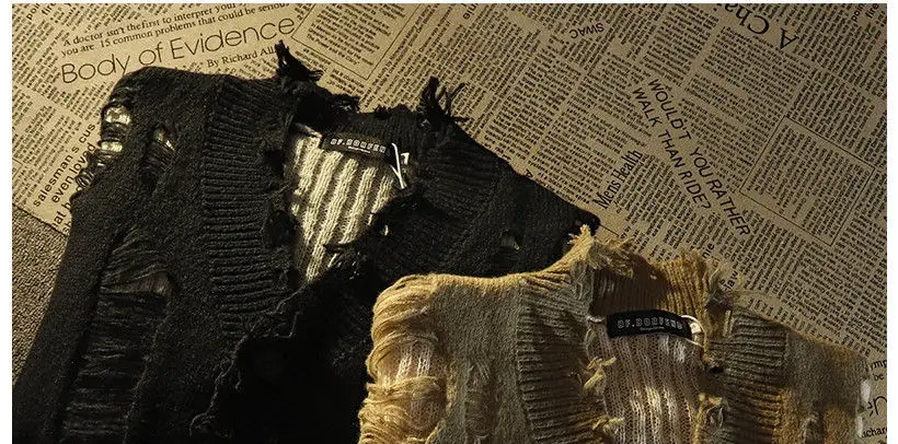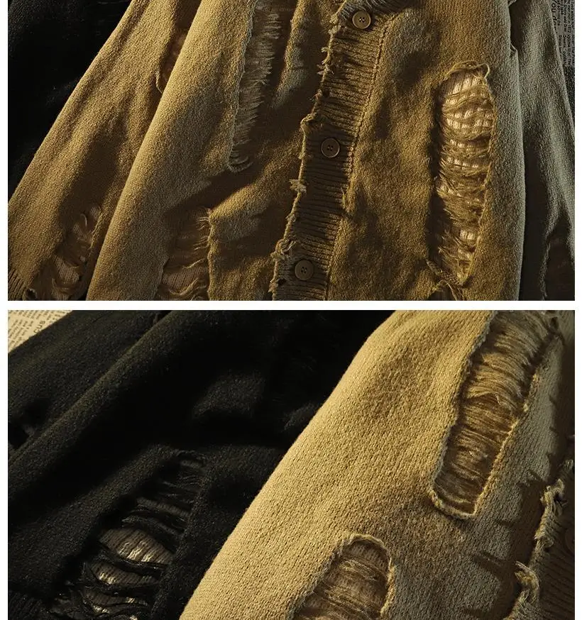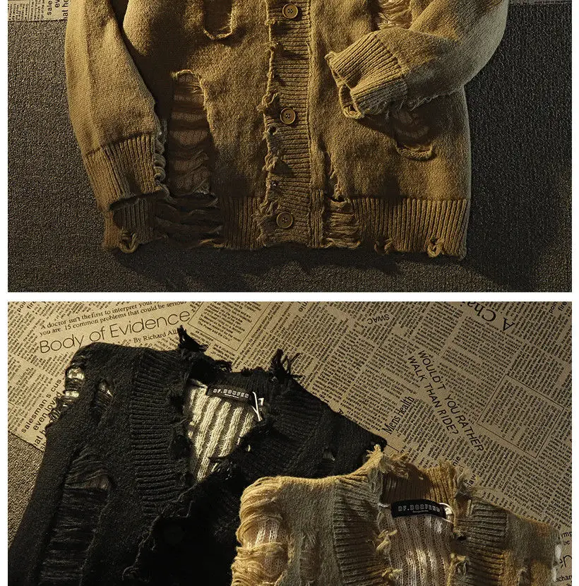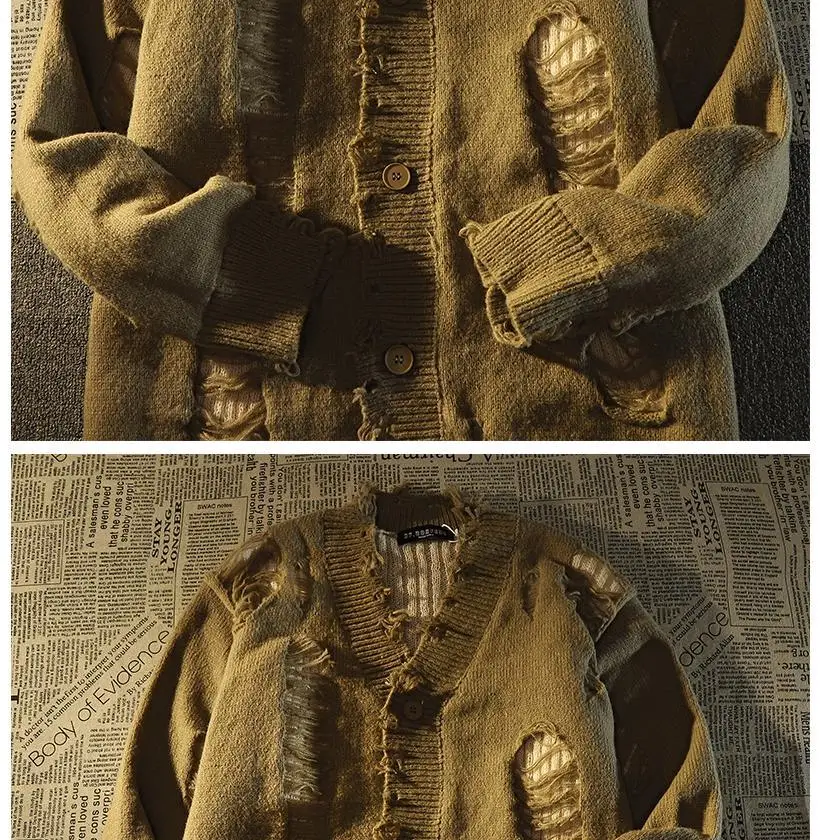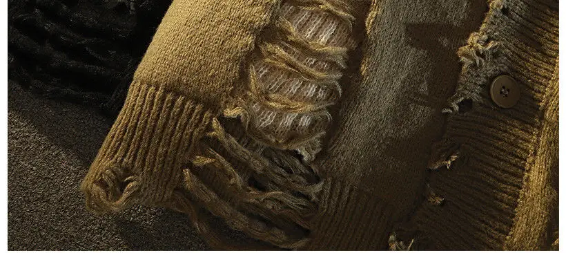 Ripped distressed design fringed knitted cardigan sweaters for men and women long-sleeved jackets for autumn winter loose