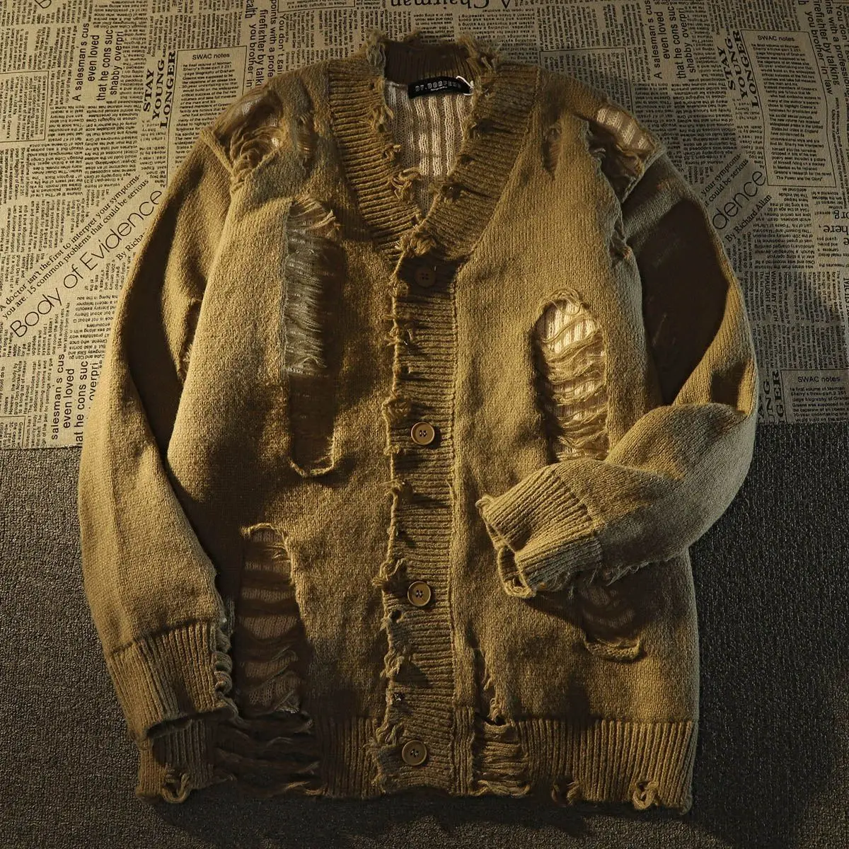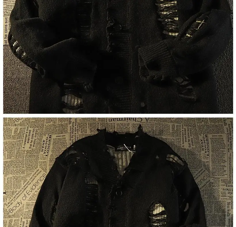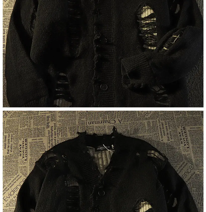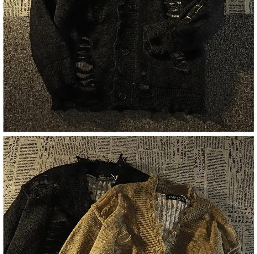 Ripped distressed design fringed knitted cardigan sweaters for men and women long-sleeved jackets for autumn winter loose