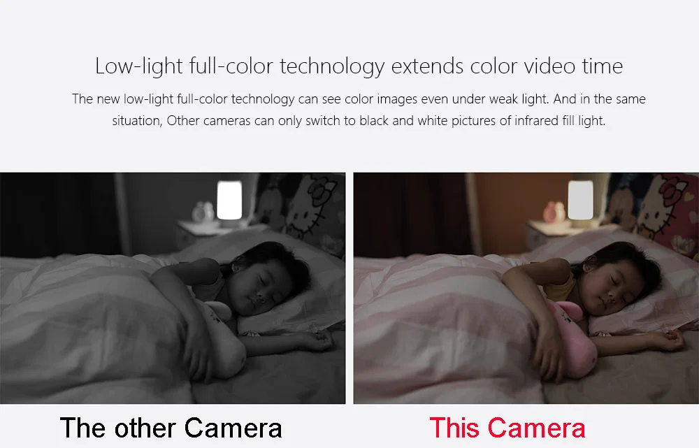 With the imilab Smart 1080P WiFi camera , you can sleep soundly! The built-in 10pcs 940nm IR-cut LEDs and quiet motor enable this surveillance camera capture clear night vision images up to 9 meters distance silently. Besides, the rotatable design of the camera makes it capable of monitoring wider range in the horizontal and vertical direction via the APP control. What is more, the concealed TF card slot provides not only a beautiful and integrated appearance but also a convenient storage method for you!