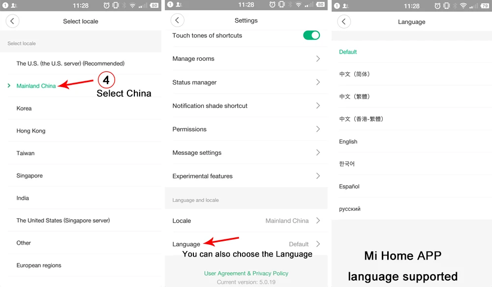 The APP supports Chinese and English, but some font of the APP will be Chinese with the change of the phone language.
