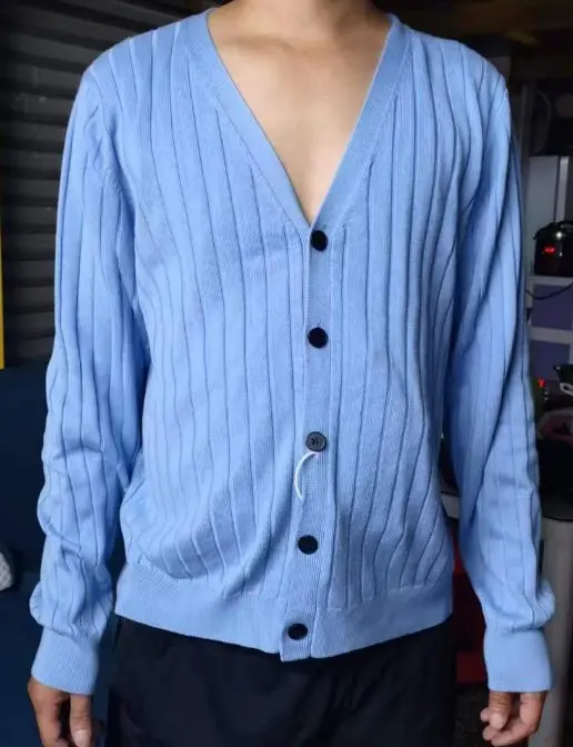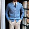 Sweater V Neck Men Single Breasted Jumpers Knitted Cardigan Outerwear Solid Striped Loose Fit 2025 Slight Strech Spring